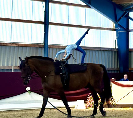 Übungen auf den Turnbahnen, den Turnpferden und den Pferden. Die Lindenhofer Volti-Pferde Stella, Ryllie, Rudi, Loon und Kayana haben einen supertollen Job gemacht. Dafür wurden sie dann von den